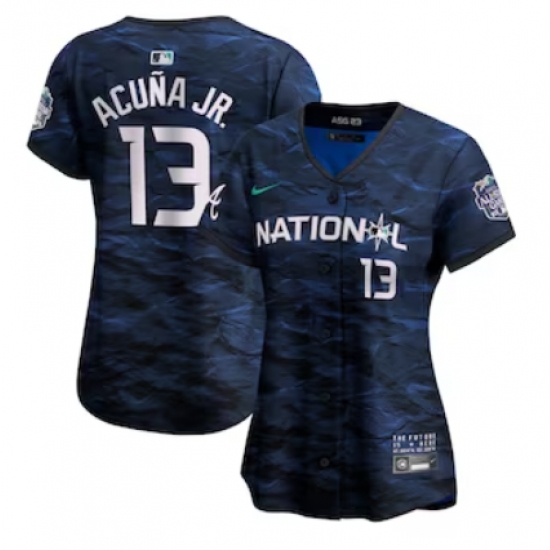 >Women's National League #13 Ronald Acuña Jr. Nike Royal 2023 MLB All-Star Game Limited Player Jersey