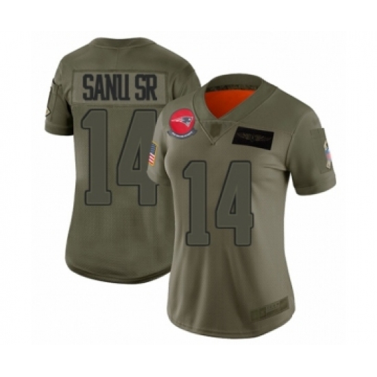 >Women's New England Patriots #14 Mohamed Sanu Sr Limited Olive 2019 Salute to Service Football Jersey