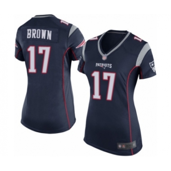 >Women's New England Patriots #17 Antonio Brown Game Navy Blue Team Color Football Jersey
