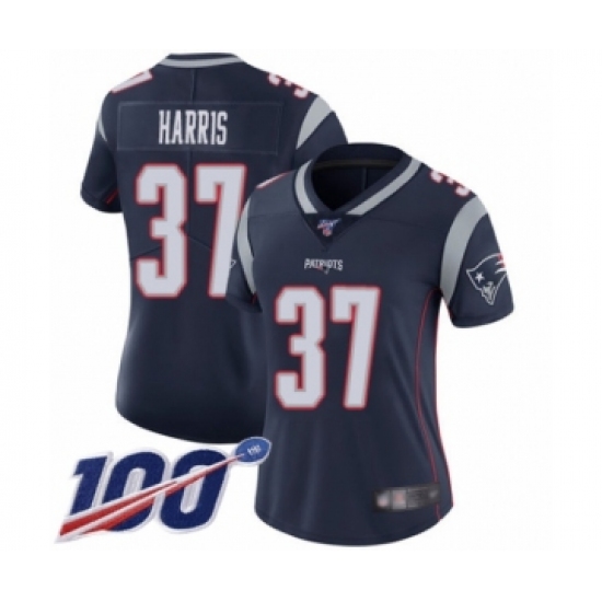 Women's New England Patriots #37 Damien Harris Navy Blue Team Color Vapor Untouchable Limited Player 100th Season Football Jersey