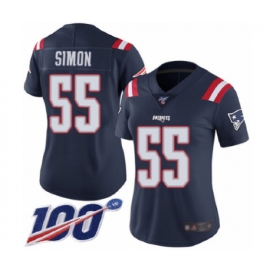 >Women's New England Patriots #55 John Simon Limited Navy Blue Rush Vapor Untouchable 100th Season Football Jersey