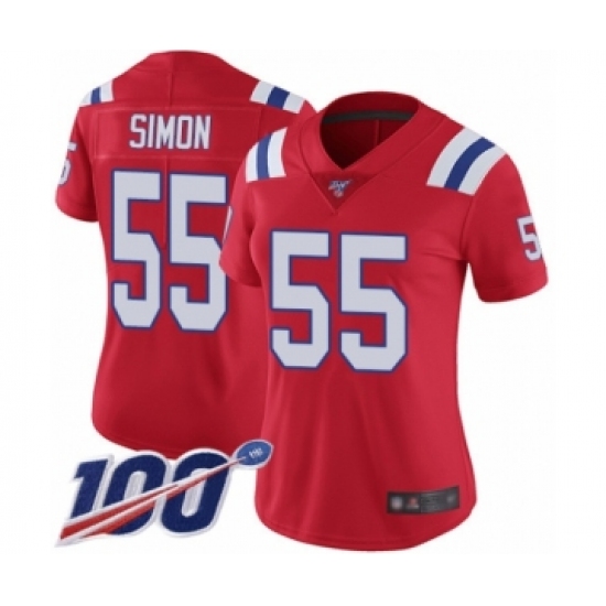 Women's New England Patriots #55 John Simon Red Alternate Vapor Untouchable Limited Player 100th Season Football Jersey