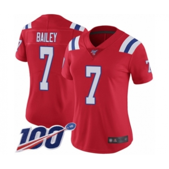 Women's New England Patriots #7 Jake Bailey Red Alternate Vapor Untouchable Limited Player 100th Season Football Jersey