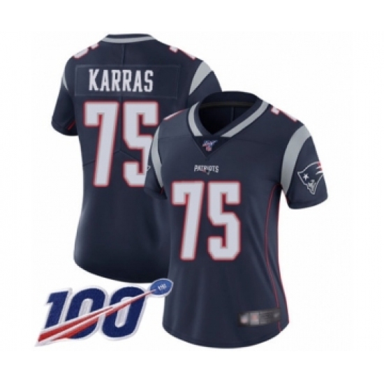 Women's New England Patriots #75 Ted Karras Navy Blue Team Color Vapor Untouchable Limited Player 100th Season Football Jersey