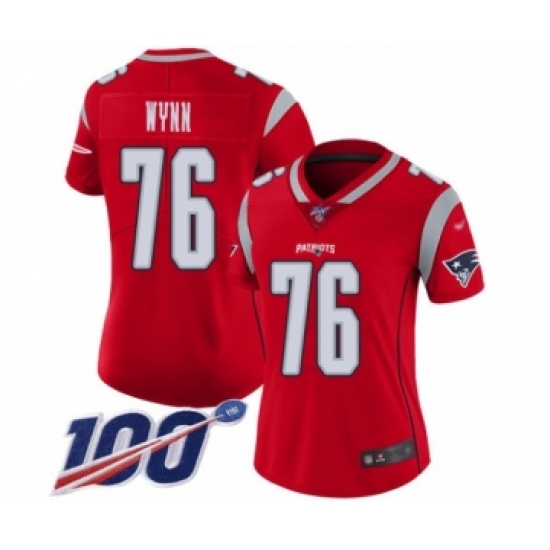 >Women's New England Patriots #76 Isaiah Wynn Limited Red Inverted Legend 100th Season Football Jersey