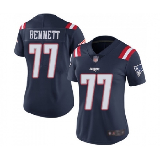 >Women's New England Patriots #77 Michael Bennett Limited Navy Blue Rush Vapor Untouchable Football Jersey