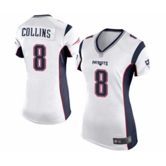 >Women's New England Patriots #8 Jamie Collins Game White Football Jersey
