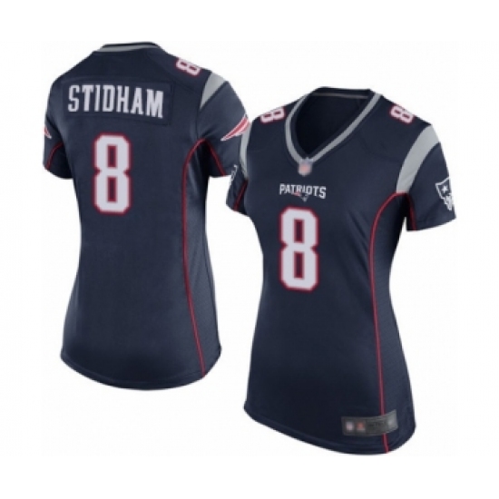Women's New England Patriots #8 Jarrett Stidham Game Navy Blue Team Color Football Jersey