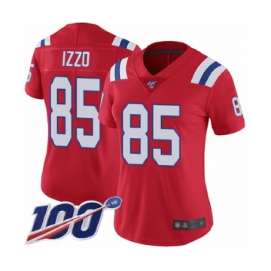 Women's New England Patriots #85 Ryan Izzo Red Alternate Vapor Untouchable Limited Player 100th Season Football Jersey
