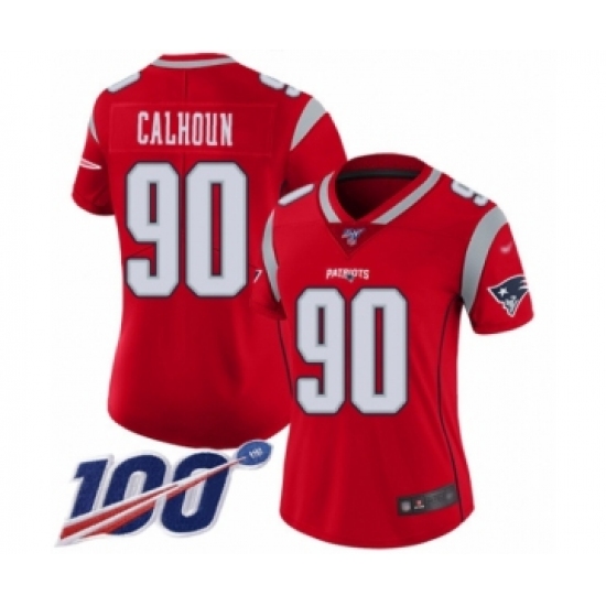 >Women's New England Patriots #90 Shilique Calhoun Limited Red Inverted Legend 100th Season Football Jersey