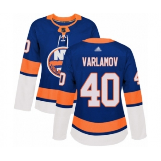 >Women's New York Islanders #40 Semyon Varlamov Authentic Royal Blue Home Hockey Jersey