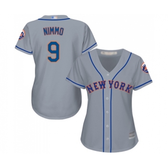 >Women's New York Mets #9 Brandon Nimmo Authentic Grey Road Cool Base Baseball Jersey