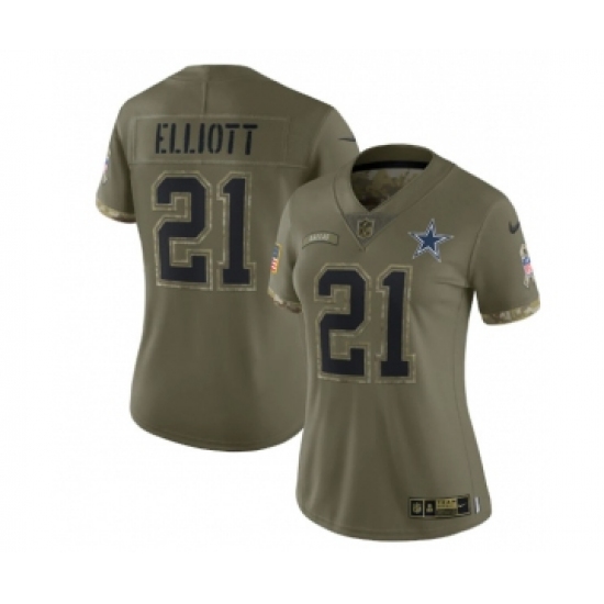 Women's Nike Dallas Cowboys #21 Ezekiel Elliott 2022 Olive Salute To Service Limited Stitched Jersey
