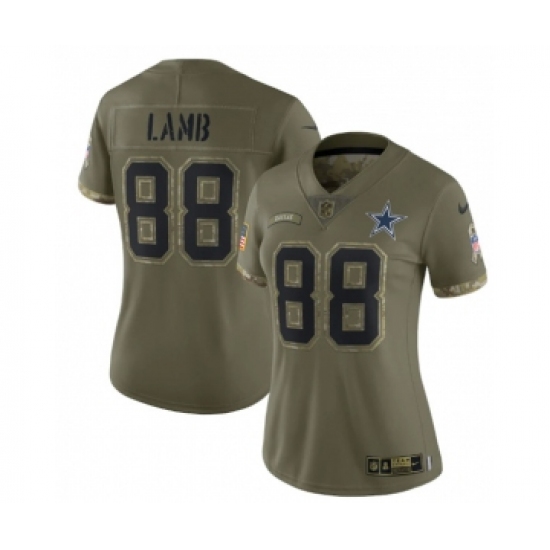 >Women's Nike Dallas Cowboys #88 CeeDee Lamb 2022 Olive Salute To Service Limited Stitched Jersey