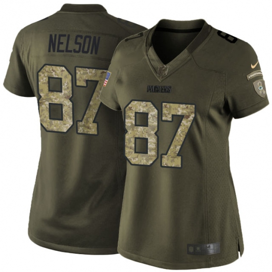 Home>NFL>Green Bay Packers>Jordy Nelson>Women's Nike Green Bay Packers #87 Jordy Nelson Elite Green Salute to Service NFL Jersey