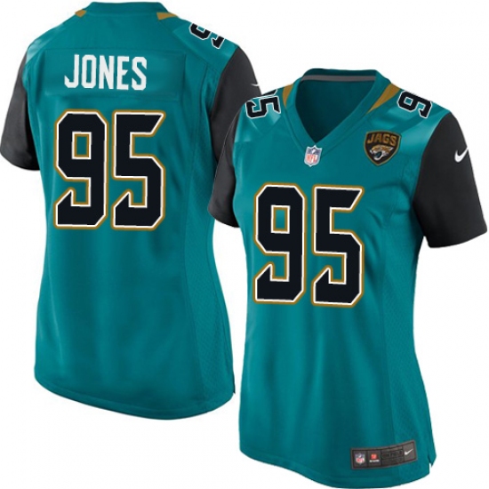 Home>NFL>Jacksonville Jaguars>Abry Jones>Women's Nike Jacksonville Jaguars #95 Abry Jones Game Teal Green Team Color NFL Jersey