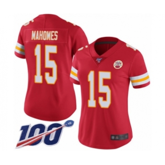 Women's Nike Kansas City Chiefs #15 Patrick Mahomes Red Team Color Vapor Untouchable Limited Player 100th Season NFL Jersey