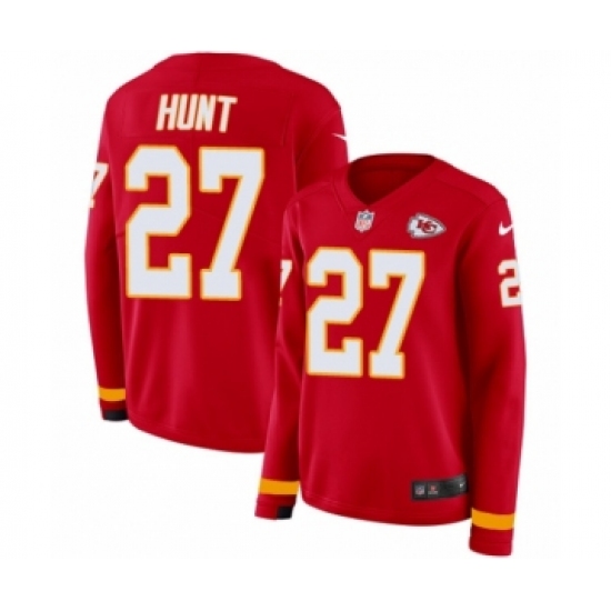 >Women's Nike Kansas City Chiefs #27 Kareem Hunt Limited Red Therma Long Sleeve NFL Jersey