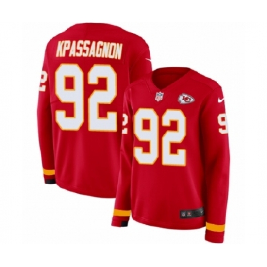 >Women's Nike Kansas City Chiefs #92 Tanoh Kpassagnon Limited Red Therma Long Sleeve NFL Jersey