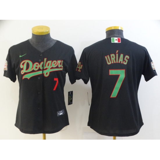 >Women's Nike Los Angeles Dodgers #7 Julio Urias Black 2020 World Series Authentic Jersey