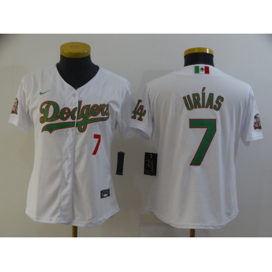 >Women's Nike Los Angeles Dodgers #7 Julio Urias White 2020 World Series Authentic Jersey