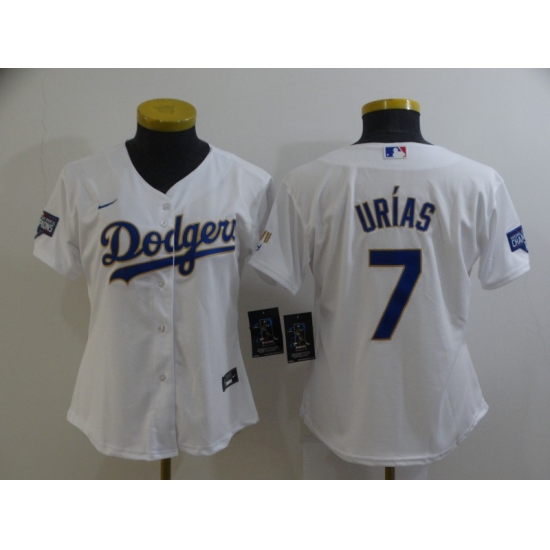 >Women's Nike Los Angeles Dodgers #7 Julio Urias White Champions Authentic Jersey