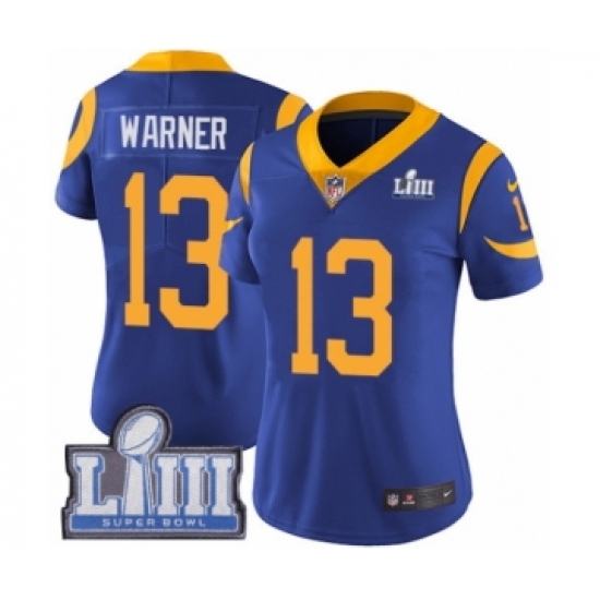 Women's Nike Los Angeles Rams #13 Kurt Warner Royal Blue Alternate Vapor Untouchable Limited Player Super Bowl LIII Bound NFL Jersey