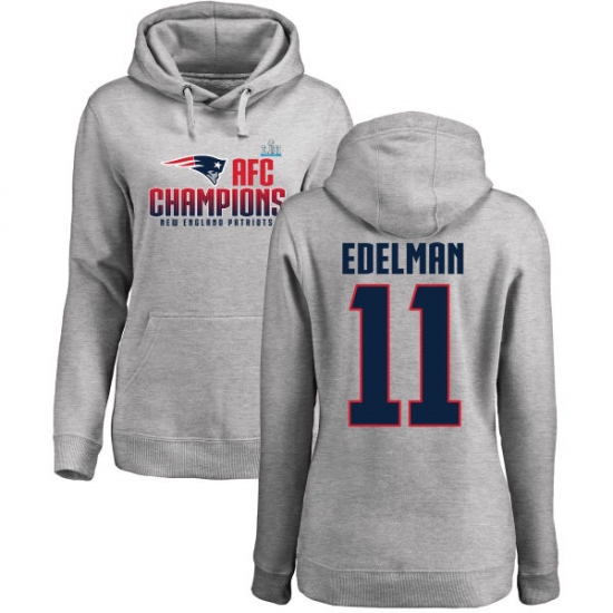 Women's Nike New England Patriots #11 Julian Edelman Heather Gray 2017 AFC Champions Pullover Hoodie