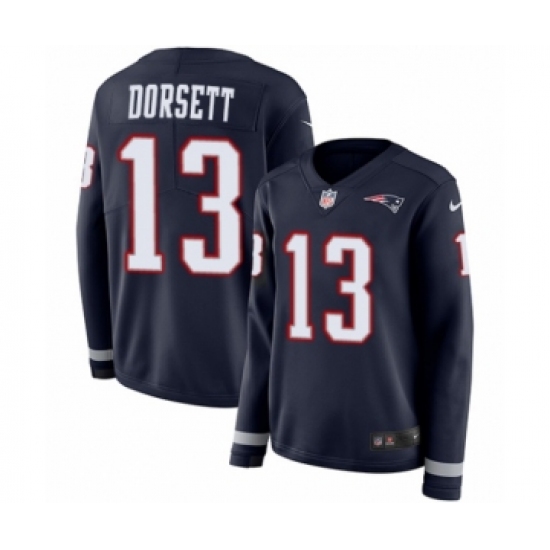 Women's Nike New England Patriots #13 Phillip Dorsett Limited Navy Blue Therma Long Sleeve NFL Jersey