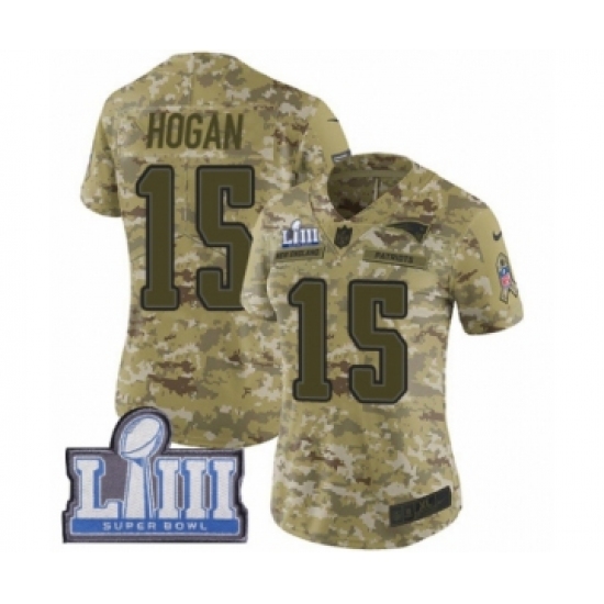 >Women's Nike New England Patriots #15 Chris Hogan Limited Camo 2018 Salute to Service Super Bowl LIII Bound NFL Jersey