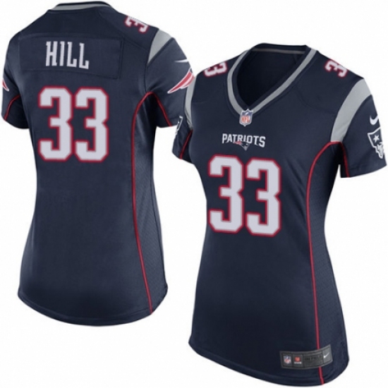 >Women's Nike New England Patriots #33 Jeremy Hill Game Navy Blue Team Color NFL Jersey