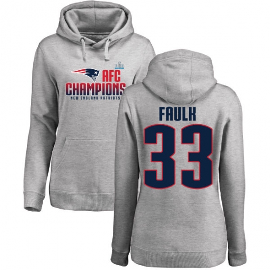 Women's Nike New England Patriots #33 Kevin Faulk Heather Gray 2017 AFC Champions Pullover Hoodie