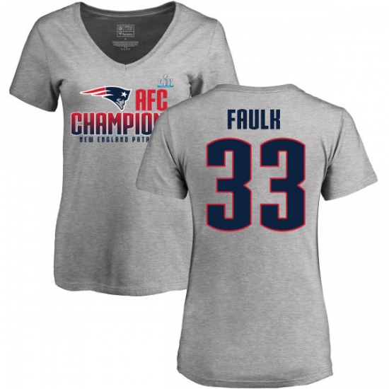 Women's Nike New England Patriots #33 Kevin Faulk Heather Gray 2017 AFC Champions V-Neck T-Shirt