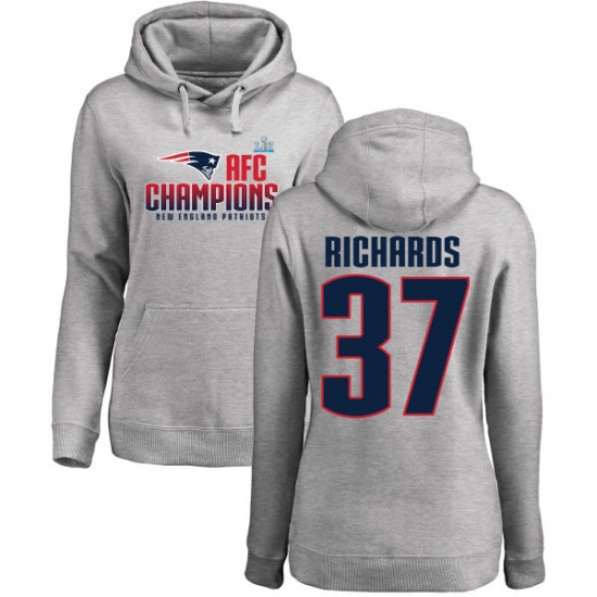 >Women's Nike New England Patriots #37 Jordan Richards Heather Gray 2017 AFC Champions Pullover Hoodie