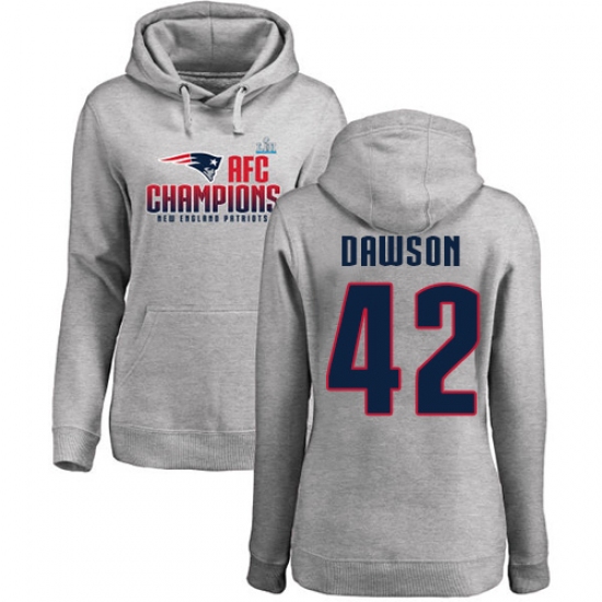 Women's Nike New England Patriots #42 Duke Dawson Heather Gray 2017 AFC Champions Pullover Hoodie