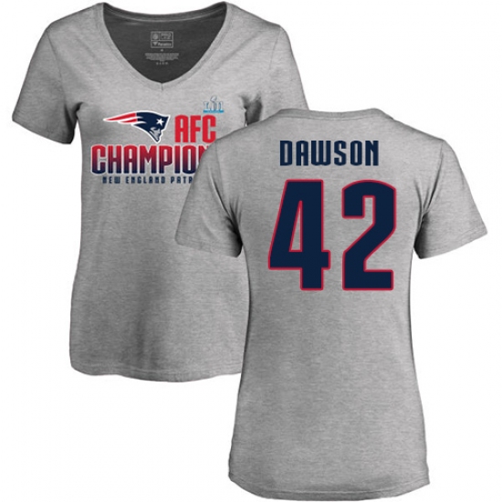 >Women's Nike New England Patriots #42 Duke Dawson Heather Gray 2017 AFC Champions V-Neck T-Shirt