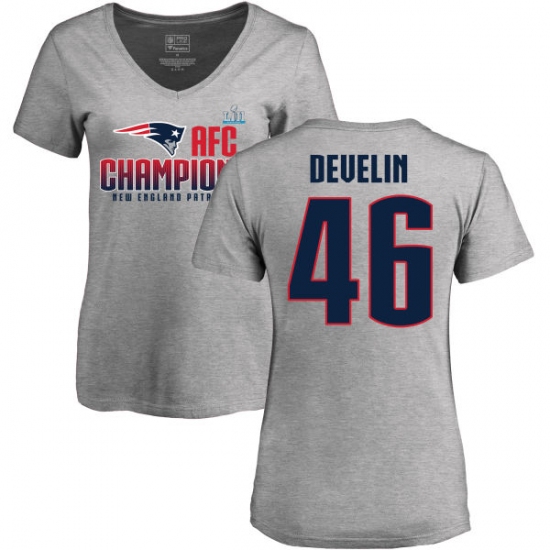 Women's Nike New England Patriots #46 James Develin Heather Gray 2017 AFC Champions V-Neck T-Shirt