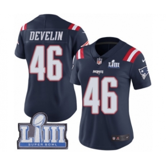 Women's Nike New England Patriots #46 James Develin Limited Navy Blue Rush Vapor Untouchable Super Bowl LIII Bound NFL Jersey