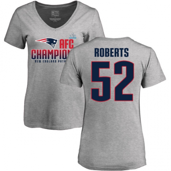 >Women's Nike New England Patriots #52 Elandon Roberts Heather Gray 2017 AFC Champions V-Neck T-Shirt