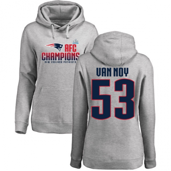 >Women's Nike New England Patriots #53 Kyle Van Noy Heather Gray 2017 AFC Champions Pullover Hoodie
