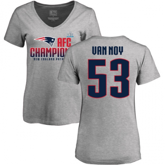 >Women's Nike New England Patriots #53 Kyle Van Noy Heather Gray 2017 AFC Champions V-Neck T-Shirt