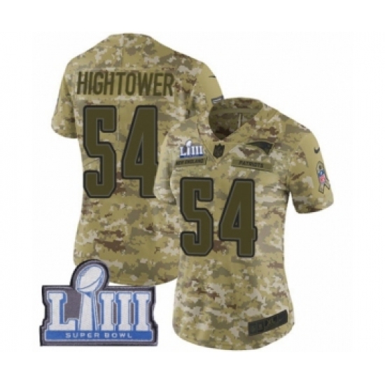 >Women's Nike New England Patriots #54 Dont'a Hightower Limited Camo 2018 Salute to Service Super Bowl LIII Bound NFL Jersey