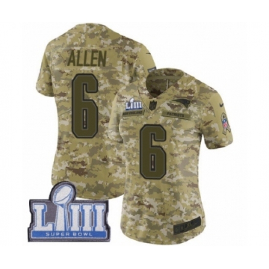 Women's Nike New England Patriots #6 Ryan Allen Limited Camo 2018 Salute to Service Super Bowl LIII Bound NFL JerseyA