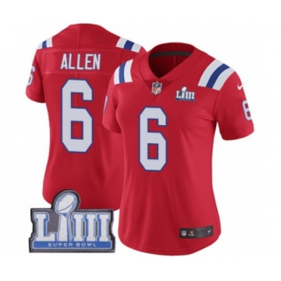 Women's Nike New England Patriots #6 Ryan Allen Red Alternate Vapor Untouchable Limited Player Super Bowl LIII Bound NFL Jersey