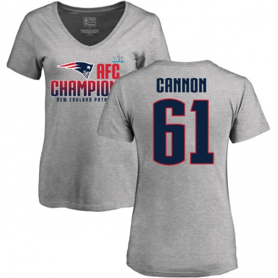>Women's Nike New England Patriots #61 Marcus Cannon Heather Gray 2017 AFC Champions V-Neck T-Shirt