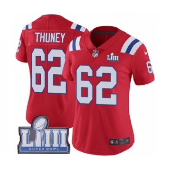 Women's Nike New England Patriots #62 Joe Thuney Red Alternate Vapor Untouchable Limited Player Super Bowl LIII Bound NFL Jersey
