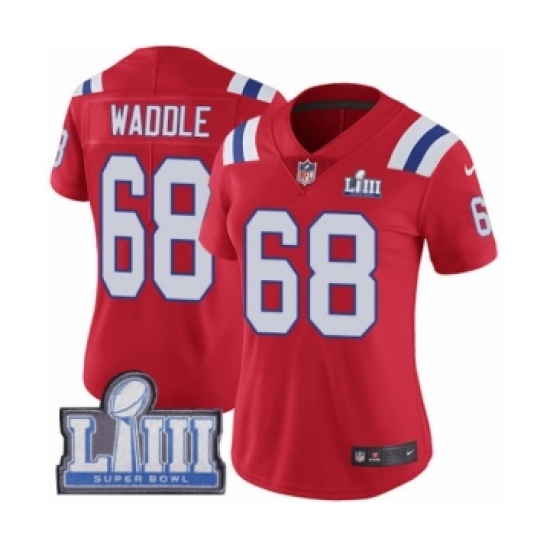 Women's Nike New England Patriots #68 LaAdrian Waddle Red Alternate Vapor Untouchable Limited Player Super Bowl LIII Bound NFL Jersey