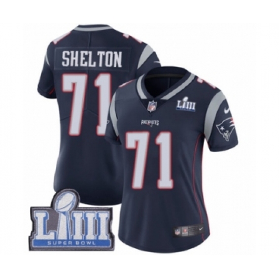 Women's Nike New England Patriots #71 Danny Shelton Navy Blue Team Color Vapor Untouchable Limited Player Super Bowl LIII Bound NFL Jersey