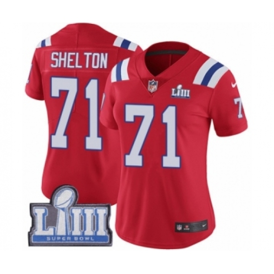 Women's Nike New England Patriots #71 Danny Shelton Red Alternate Vapor Untouchable Limited Player Super Bowl LIII Bound NFL Jersey