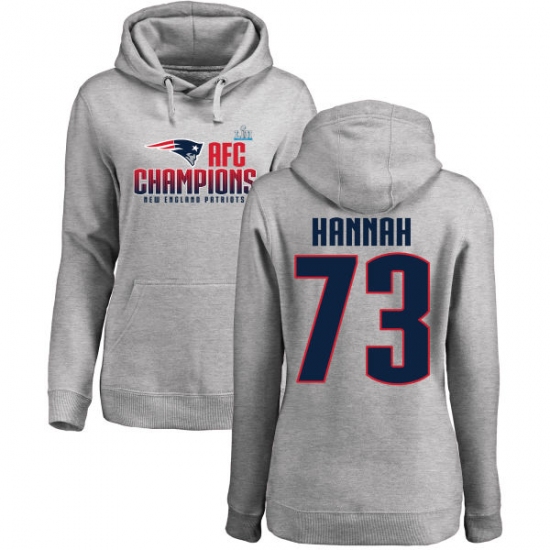 Women's Nike New England Patriots #73 John Hannah Heather Gray 2017 AFC Champions Pullover Hoodie